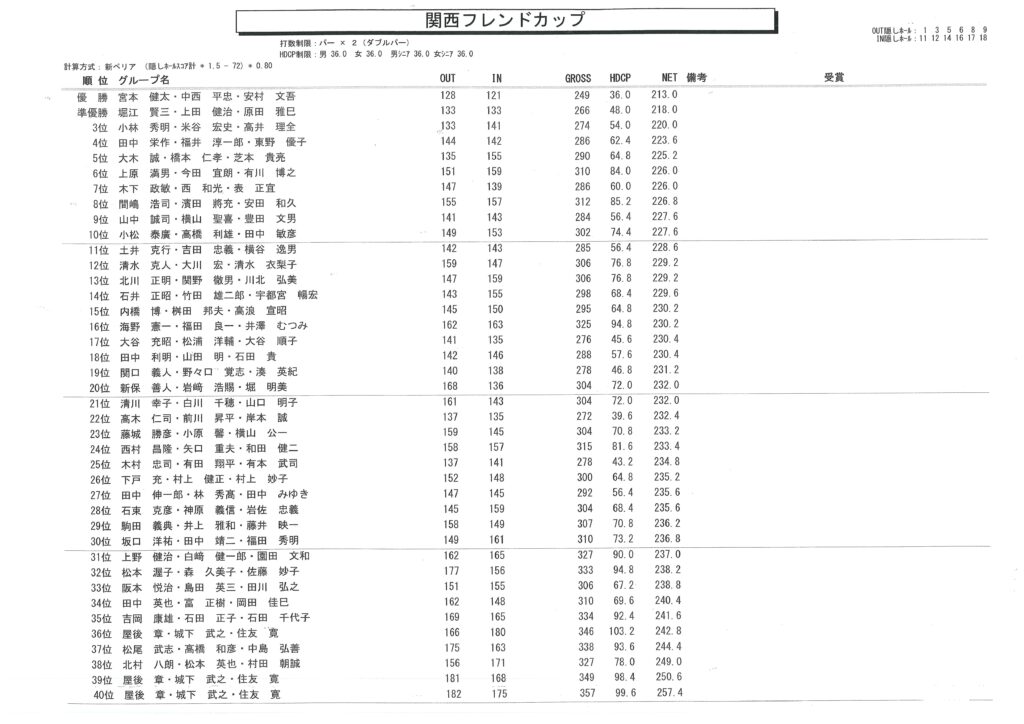 オール関西フレンドカップ成績表